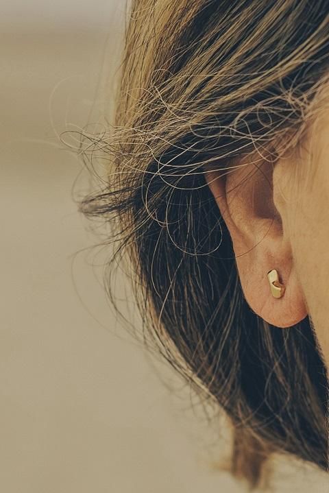 人体や動物のようにも、何か別の物のようにも見える個体を表現したピアスです。