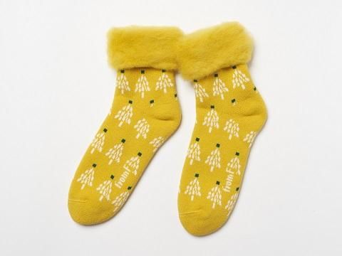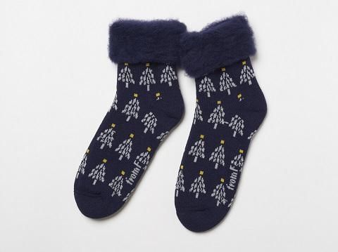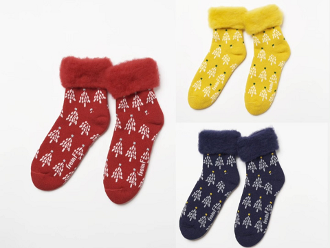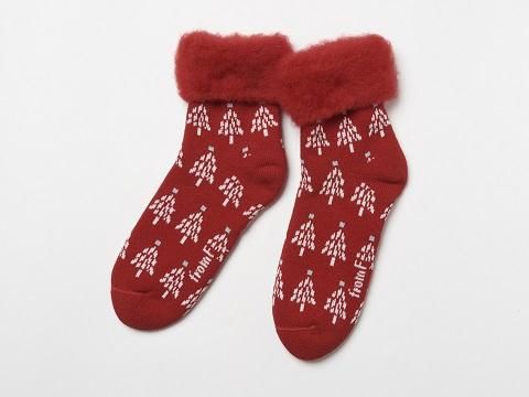 冬らしいモミの木柄のナチュラルな雰囲気の暖かいソックスです。